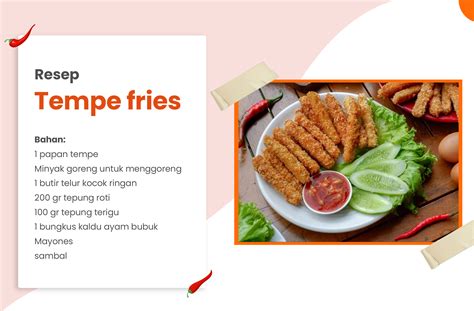 47.136 resep tempe tanpa minyak ala rumahan yang mudah dan enak dari komunitas memasak terbesar dunia! Selain itu, tempe juga bisa dikreasikan menjadi bermacam hidangan seperti tempe orek, tempe bacem, tempe mendoan, perkedel tempe, atau ditumis bersama berbagai sayuran seperti kacang panjang, buncis, atau tauge. Tempe fries bisa diolah secara mudah melalui langkah berikut ini.